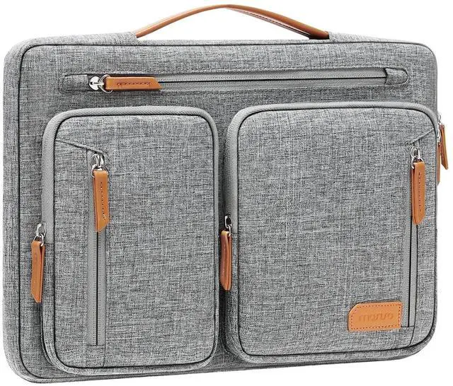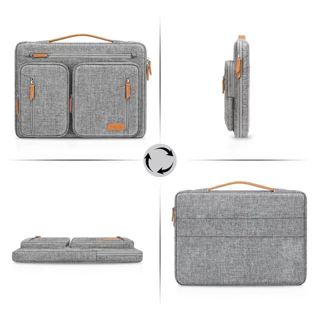 Extendable handle design makes it to carry your laptop around in comfort, you can also tuck away the handle. Side opening zipper design, avoid accidental dropping of your laptop while carrying. 5 front accessory zipper pockets provide enough space to keep mouse, earphone, pens and notepads, offering added convenience.