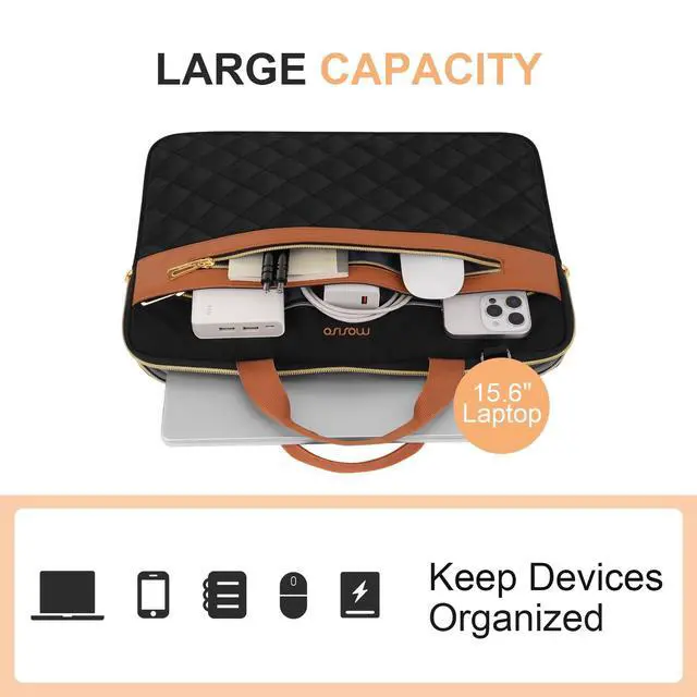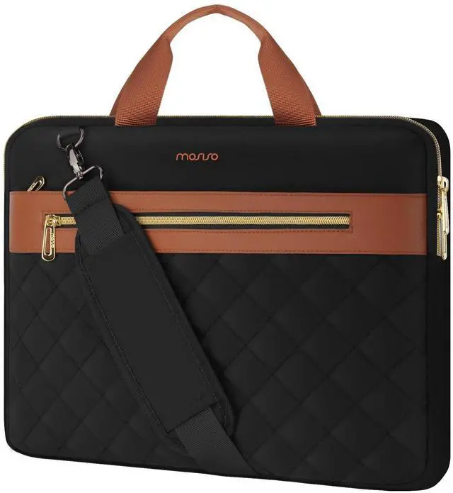 External dimensions: 15.74 x 11.41 x 0.78 inches (L x W x H). Front square quilted zipper pocket dimensions: 13.38 x 9.44 inches (L x W). ^^ Features a polyester foam padding layer and soft fabric lining for bump and shock absorption. The soft fabric lining provides protection against accidental scratches. ^^ 2 front pockets provide enough space to keep mouse, earphone, pens and notepads, offering added convenience. Simple and exquisite appearance carrying messenger shoulder bag with pocket is ideal for you to take your laptop out. Top-loading zipper on the sleeve glides smoothly and allows convenient access to your laptop computer. ^^ Removable and adjustable padding shoulder strap with a shoulder pad varied from 30.31 - maximum 56.10 inch dual sturdy handles for long time comfortably carrying. Considerate design is the back trolley suitcase belt for ease use during business trip. It is really convenient for your happy journey to any where. ^^ Compatible with MacBook Air 15 inch M4 A3241 M3 A3114 M2 A2941 2025 2024 2023, compatible with MacBook Pro 16 2025-2019 M4 A3403 A3186 M3 A2991 M2 A2780 M1 A2485 A2141, compatible with MacBook Pro 15 A1990 A1707 A1398; Compatible with Surface Laptop 5/4/3 15, compatible with Surface Book 3/2/1 15; Compatible with Asus ZenBook/VivoBook 15; Compatible with Acer Swift 3/Swift 5/Aspire 3/5/7 15.6; Compatible with HP ProBook/Spectre x360/Envy x360 15.6; compatible with HP Omen/Pavilion x360 15.6.