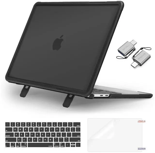 Translucent case allowing logo to shine through ^^ Engineering shock-absorbent beveled ridges wraparound bumper heavy duty hard shell, provides ultimate protective for your laptop against accidental scuffs, drops, and scratches. Fully vented for continuous cooling, fully access to all buttons and features. Totally removable, easily to put on and take off. The built-in foldable kickstands provide an ergonomic typing angle, also give you a better visual experience ^^ 2 pack USB C to USB adapter plug the adapter USB Type-C end into laptop USB-C port, then connect another female USB 3.0 port to standard USB-A device, such as, mouse, keyboard, SSD and flash.