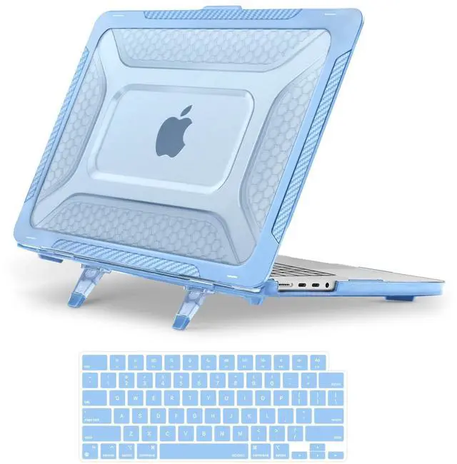 PC case dimension: 14.05 x 9.81 x 0.7 inch, compatible with MacBook Pro M4 16 inch case, compatible with MacBook Pro M3 16 inch case, compatible with MacBook Pro M2 16 inch case and compatible with MacBook Pro M1 16 inch case (models: A3403 & A3186 & A2991 & A2780 & A2485) Pro Max Chip with Liquid Retina XDR Display & Touch ID with dimension: 14.01 x 9.77 x 0.66 inch (2025 2024 2023 2022 2021 Released). ^^ The built-in foldable kickstands provide an appropriate ergonomic viewing & typing angle, give you a better visual experience. Engineered shock-absorbing beveled ridges honeycomb design wraparound TPU bumper heavy duty hard shell, provides ultimate protection for your laptop against scratches, drops, accidental scuffs and other damages. ^^ Alignment for All Ports. Fully vented for heat disbursement, fully access to all buttons and features. Totally removable, easy to put on and take off that will not add any risk of harming your laptop during application. This comfortable protective hard shell case can be used for daily, office, home, travelling, working & study, shock-absorbent, anti-cracking, anti-fingerprint and anti-scratch. ^^ Including keyboard cover to protect your keyboard against spills.