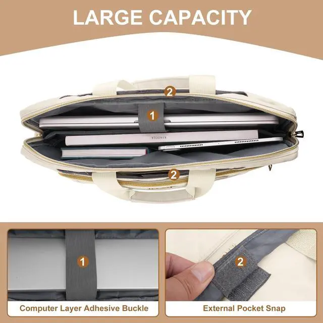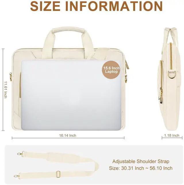 External dimensions: 16.14 x 11.61 x 1.18 inches (L x W x H). Front square quilted zipper pocket dimensions: 12.99 x 8.26 inches (L x W). ^^ The thicken laptop shoulder messenger bag made of polyester material, features a polyester foam padding layer and soft fabric lining for bump and shock absorption. The soft fabric lining provides protection against accidental scratches. Top-loading zipper on the sleeve glides smoothly and allows convenient access to your laptop computer. ^^ 3 front pockets and 1 back pocket provide enough space to keep mouse, earphone, pens and notepads, offering added convenience. Simple and exquisite appearance carrying messenger shoulder bag with pocket is ideal for you to take your laptop out. ^^ Removable and adjustable padding shoulder strap with a shoulder pad varied from 30.31 - maximum 56.10 inch dual sturdy handles for long time comfortably carrying. Considerate design is the back trolley suitcase belt for ease use during business trip. It is really convenient for your happy journey to any where. ^^ Compatible with MacBook Air 15 inch M4 A3241 M3 A3114 M2 A2941 2025 2024 2023, compatible with MacBook Pro 16 2025-2019 M4 A3403 A3186 M3 A2991 M2 A2780 M1 A2485 A2141, compatible with MacBook Pro 15 A1990 A1707 A1398; Compatible with Surface Laptop 5/4/3 15, compatible with Surface Book 3/2/1 15; Compatible with Asus ZenBook/VivoBook 15; Compatible with Acer Swift 3/Swift 5/Aspire 3/5/7 15.6; Compatible with HP ProBook/Spectre x360/Envy x360 15.6; compatible with HP Omen/Pavilion x360 15.6.