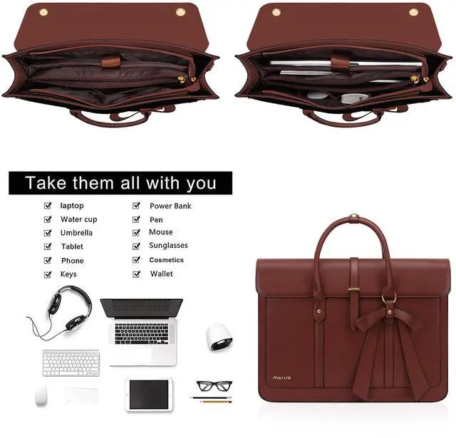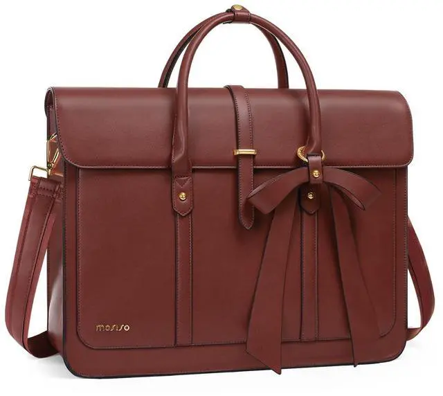 MOSISO Laptop Bag for Women, 13-14 inch PU Leather Laptop Shoulder Bags Convertible Backpack, 13.3 inch Messenger Bags Casual Handbag Work Briefcase Travel Computer Bag with Bowknot, Brown