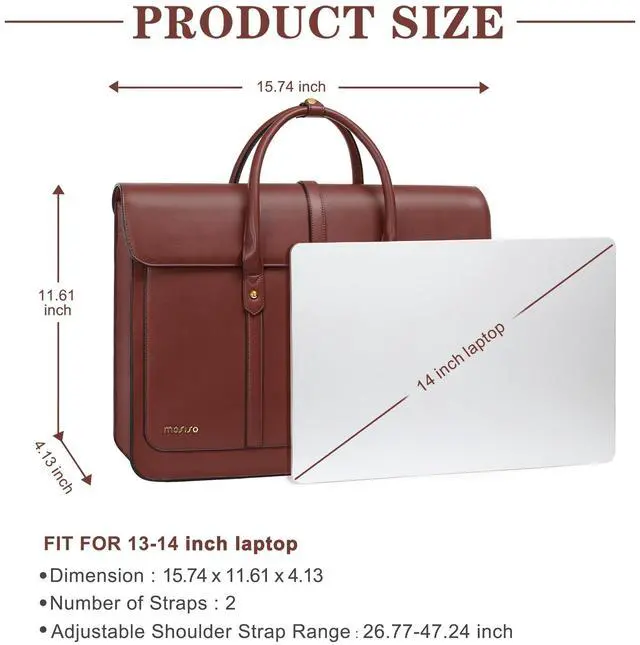 Back pocket dimensions: 7.87 x 5.91 inch (L x W). ^^ Features a polyester foam padding layer and soft fabric lining for bump and shock absorption and protection of your computer or other stuff from accidental scratches. A top opening zipper gliding smoothly and allows convenient access to your device. Front 2 metal buckles also ensure the safety of your laptop and other stuff. ^^ Roomy enough with 3 compartments for all your daily stuff. The computer compartment in the middle provides a thick padded foam section with a hook & loop strap closure for your laptop or tablet. Professional design to protect your laptop against accidental impacts and scratches. The other two side compartments can store your jewelry, mobile phone, keys, mouse, passports, credit cards, cash, makeups and so on. ^^ Made of waterproof PU leather material, stylish and fashion. With 2 removable and adjustable padding shoulder strap varied from 26.77 -maximum 47.24 inch. Removable shoulder strap allows you to carry it as a backpack, crossbody bag, shoulder bag or handbag. ^^ This attractive fashionable waterproof PU leather briefcase backpack is ideal for daily use at shopping, office, business trip, work, weekend, outdoor activities, outdoor holiday, travel, gyms, camp, etc.