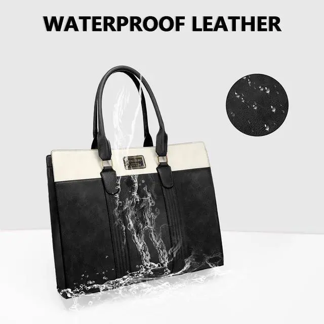MOSISO Laptop Bag for Women, 15.6 inch PU Leather Laptop Tote Work Bags, 15.6-16 inch Large Capacity Double Vertical Stripes Computer Briefcase Waterproof Bag for Office Travel, Black