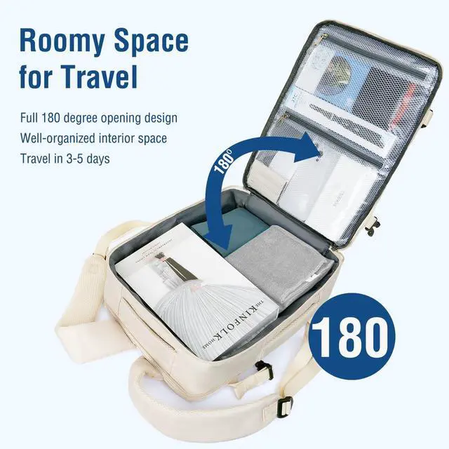 Dimension: 15.74 x 11.61 x 5.5 inches (L x W x H). This travel backpack meets the requirements of airlines, it can easily fit under the seat or in the overhead compartment, saving time for checked luggage, it is the best personal item for air travel.