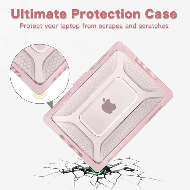 & Touch ID with dimension: 13.4 x 9.35 x 0.45 inch (2026 2025 2024 2023 Released). Totally removable, easy to put on and take off that will not add any risk of harming your laptop during application ^^ The built-in foldable kickstands provide an appropriate ergonomic viewing & typing angle, give you a better visual experience. Engineered shock-absorbing beveled ridges honeycomb design wraparound TPU bumper heavy duty hard shell, provides ultimate protection for your laptop against scratches, drops, accidental scuffs and other damages ^^ Including keyboard cover to protect your keyboard against spills. This comfortable protective hard shell case can be used for daily, office, home, travelling, working & study, shock-absorbent, crack-resistant, reduces-fingerprints and scratches-resistant