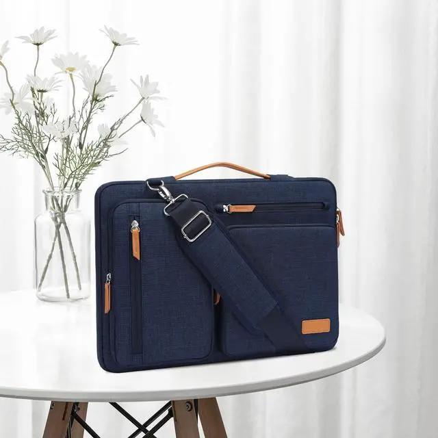 Vertical pocket dimensions: 7.48 x 4.13 inches (L x W). ^^ The main inner compartment for laptop or tablet. Front 4 zipper pockets is great for quick-access and store cell phone, pen slots, wallet, keys and other small items. ^^ 360 degree all around protective reinforced interior edge protect your laptop from any accidental dropping. Features foam padding layer and fluffy fleece fabric lining for bump and shock absorption and protection of your computer from accidental scratches. Side opening double zippers on the bag glide smoothly and allows convenient access to your laptop computer. ^^ Removable and adjustable padding shoulder strap with a shoulder pad varied from 28.54 inch to maximum 52.56 inch. Extendable PU handle design makes it to carry your laptop around in comfort, you can also tuck away the handle. Considerate design is the back trolley suitcase belt for ease use during business trip. It is really convenient for your happy journey to any where. ^^ Compatible with MacBook Air 15 inch M4 A3241 M3 A3114 M2 A2941 2025 2024 2023, compatible with MacBook Pro 15 inch A1990 A1707; Compatible with Surface Laptop 5/4/3 15 inch; Compatible with Dell XPS 15/Vostro/Chromebook 15; Compatible with Acer Swift 7/Switch 7/Swift 5/Aspire One Cloudbook 14; Compatible with Lenovo ThinkPad X1 Yoga, compatible with Lenovo ThinkPad T-Series/E-Series/Ideapad/Flex 14; Compatible with HP Probook/ZBook/SlateBook/EliteBook 14.