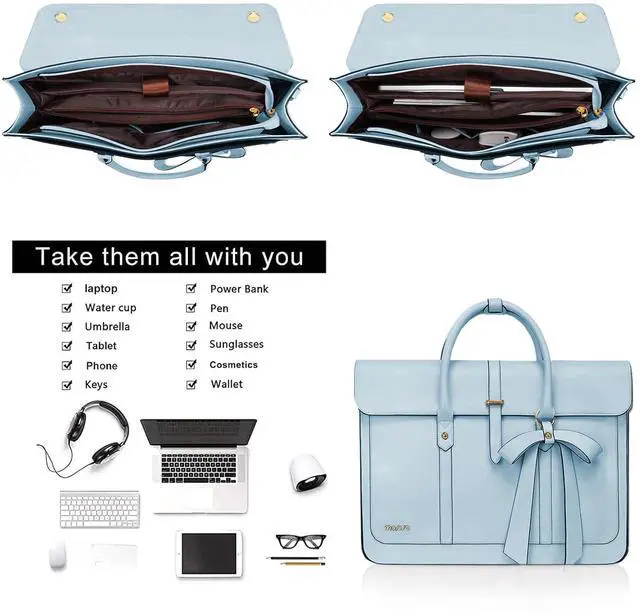 Back pocket dimensions: 7.87 x 5.91 inch (L x W). ^^ Features a polyester foam padding layer and soft fabric lining for bump and shock absorption and protection of your computer or other stuff from accidental scratches. A top opening zipper gliding smoothly and allows convenient access to your device. Front 2 metal buckles also ensure the safety of your laptop and other stuff. ^^ Roomy enough with 3 compartments for all your daily stuff. The computer compartment in the middle provides a thick padded foam section with a hook & loop strap closure for your laptop or tablet. Professional design to protect your laptop against accidental impacts and scratches. The other two side compartments can store your jewelry, mobile phone, keys, mouse, passports, credit cards, cash, makeups and so on. ^^ Made of waterproof PU leather material, stylish and fashion. With 2 removable and adjustable padding shoulder strap varied from 26.77 -maximum 47.24 inch. Removable shoulder strap allows you to carry it as a backpack, crossbody bag, shoulder bag or handbag. ^^ This attractive fashionable waterproof PU leather briefcase backpack is ideal for daily use at shopping, office, business trip, work, weekend, outdoor activities, outdoor holiday, travel, gyms, camp, etc.