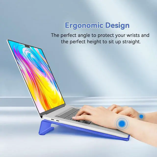 • Ergonomic fixed-angle design. This laptop stand features a preset height and angle, meticulously engineered for optimal ergonomic alignment to minimize neck strain. Crafted for simplicity and comfort, its fixed position eliminates the need for adjustments, providing a consistent setup that promotes healthy posture during extended useideal for workstations, home offices, or on-the-go setups where quick, hassle-free ergonomics are essential.