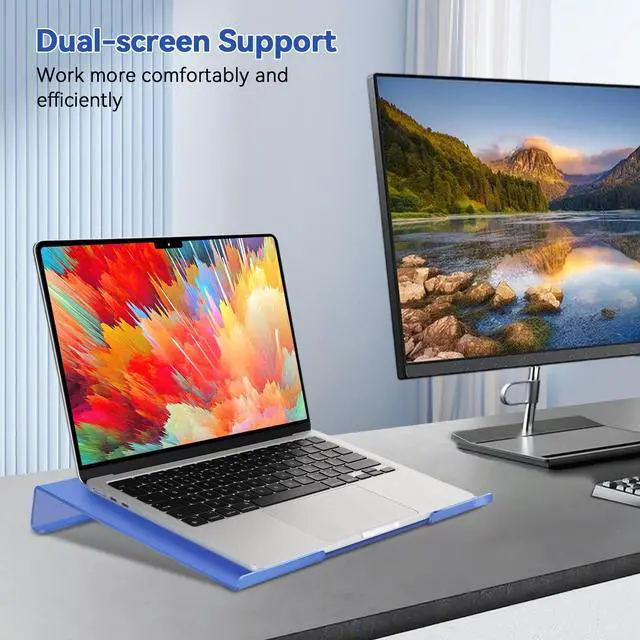 Mouse Pad Dimension: 8.27 x 10.04 inch. It is an ideal companion for computer workers. ^^ Ergonomic fixed-angle design. This laptop stand features a preset height and angle, meticulously engineered for optimal ergonomic alignment to minimize neck strain. Crafted for simplicity and comfort, its fixed position eliminates the need for adjustments, providing a consistent setup that promotes healthy posture during extended useideal for workstations, home offices, or on-the-go setups where quick, hassle-free ergonomics are essential. ^^ Stable and durable acrylic construction. Made from high-quality acrylic, this stand delivers robust stability and elegant aesthetics. The base includes integrated non-slip rubber feet that securely grip the desk surface, preventing slips and scratches during intense typing sessions. With no installation required, you can place it on your desk instantly and enjoy reliable support for your laptop right away. ^^ Rapid heat dissipation. elevate your laptop to minimize surface contact and maximize airflow space, ensuring rapid heat dissipation. This laptop stand combats overheating while maintaining peak performancesuitable for long work sessions or intense gaming. ^^ Universal compatibility. This laptop stand seamlessly compatible with MacBook Pro/Air, compatible with Dell, compatible with ASUS, compatible with Lenovo, compatible with HP, compatible with Microsoft, compatible with Toshiba, compatible with Samsung, and compatible with all 10 to 16 inch laptops.