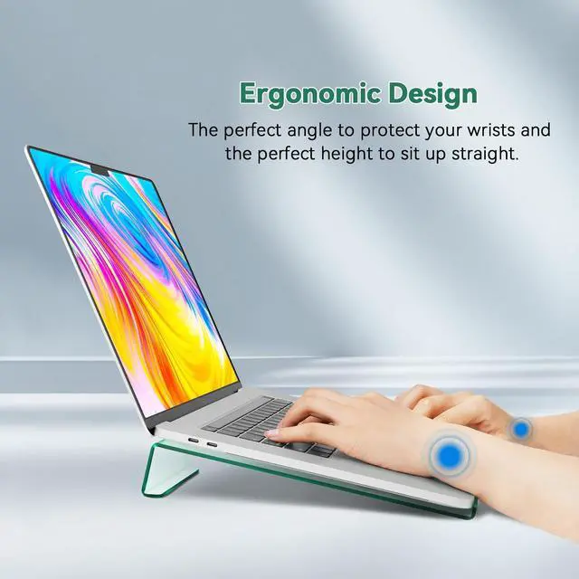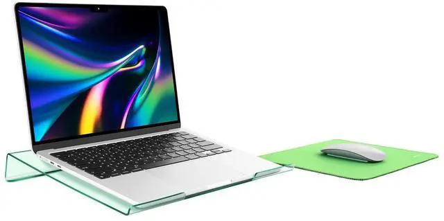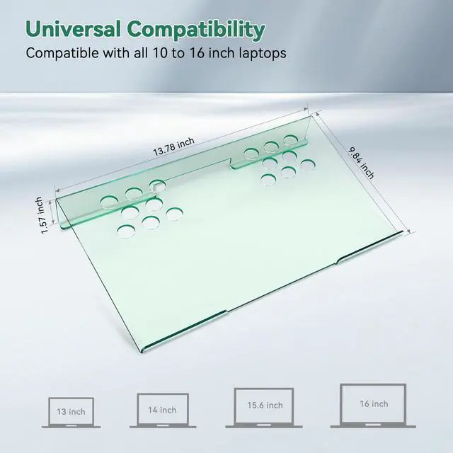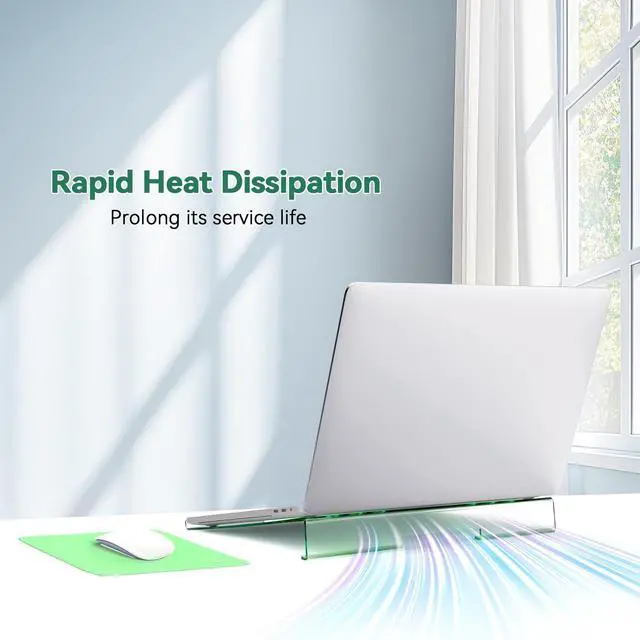 Mouse Pad Dimension: 8.27 x 10.04 inch. It is an ideal companion for computer workers. ^^ Ergonomic fixed-angle design. This laptop stand features a preset height and angle, meticulously engineered for optimal ergonomic alignment to minimize neck strain. Crafted for simplicity and comfort, its fixed position eliminates the need for adjustments, providing a consistent setup that promotes healthy posture during extended useideal for workstations, home offices, or on-the-go setups where quick, hassle-free ergonomics are essential. ^^ Stable and durable acrylic construction. Made from high-quality acrylic, this stand delivers robust stability and elegant aesthetics. The base includes integrated non-slip rubber feet that securely grip the desk surface, preventing slips and scratches during intense typing sessions. With no installation required, you can place it on your desk instantly and enjoy reliable support for your laptop right away. ^^ Rapid heat dissipation. elevate your laptop to minimize surface contact and maximize airflow space, ensuring rapid heat dissipation. This laptop stand combats overheating while maintaining peak performancesuitable for long work sessions or intense gaming. ^^ Universal compatibility. This laptop stand seamlessly compatible with MacBook Pro/Air, compatible with Dell, compatible with ASUS, compatible with Lenovo, compatible with HP, compatible with Microsoft, compatible with Toshiba, compatible with Samsung, and compatible with all 10 to 16 inch laptops.
