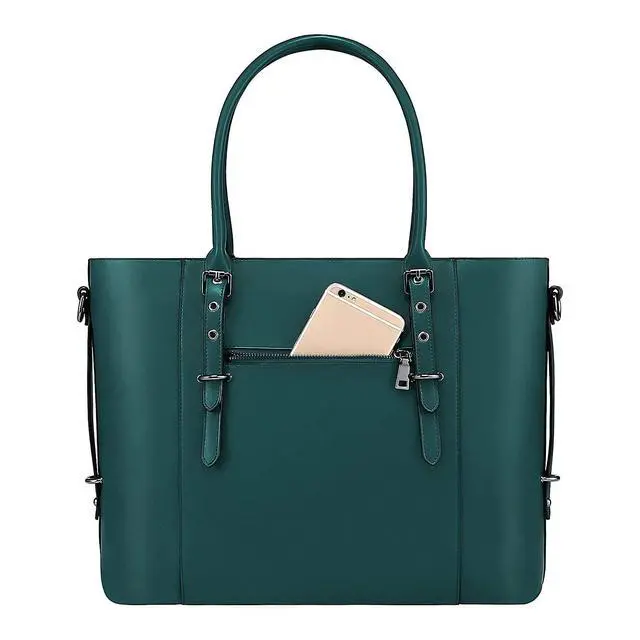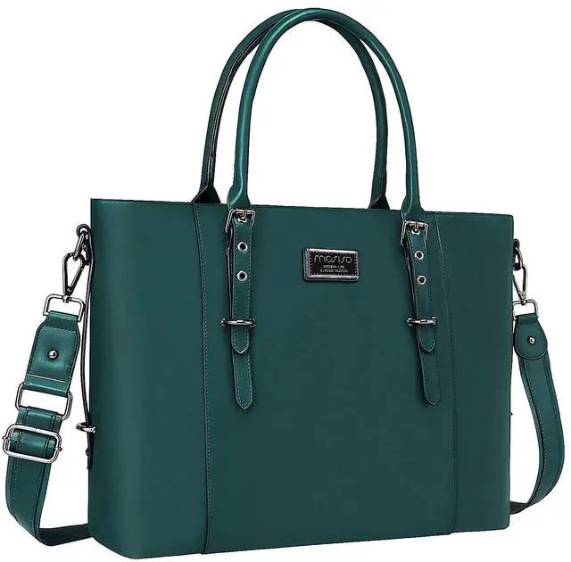MOSISO PU Leather Laptop Tote Bag for Women (15-16 inch), Waterproof Large Capacity Business Work Briefcase Shoulder Laptop Bag, Deep Teal