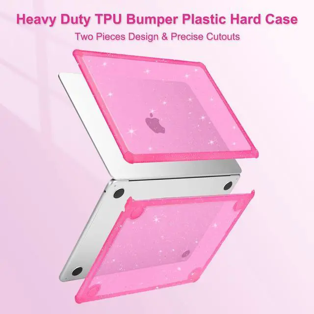 & Touch ID with dimension: 11.97 x 8.46 x 0.44 inch (2022 2023 2024 2025 2026 Released). Alignment for all ports allows fully access to all buttons and features. Totally removable, easy to put on and take off ^^ Engineering, shock-absorbing wraparound with TPU bumper on the corners & surround provide ultimate protective for your laptop. The top and bottom case added lots of small glitters, so it will show different color with the difference of light. Sparkly glitter case design makes your laptop more attractive and fashionable all the time ^^ Including keyboard cover & screen protector to protect your keyboard & screen against spills
