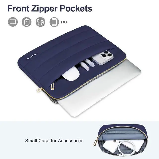 Front horizontal pocket dimension: 12.99 x 7.87 inches (L x W). The additional small pouch bag dimension: 7.87 x 4.33 x 1.38 inch (L x W x H); ^^ Made with soft touch puffy polyester material, features a polyester foam padding layer and fluffy fleece fabric lining. Protect your laptop from bump, shock and accidental scratches. ^^ Additional small storage pouch bag for you to storage laptop mouse and earphone. Same color as the big sleeve bag, harmony and stylish. This portable protective carrying sleeve case cover bag with small pouch is ideal for you to take your laptop out. ^^ Slim and lightweight; does not bulk your laptop up and can easily slide into your briefcase, backpack or other bag. Top-loading zipper on the sleeve glides smoothly and allows convenient access to your laptop computer. The bag is perfect for working, traveling, daily use and business travel. ^^ Compatible with MacBook Pro 16 inch 2026-2019 M4 A3403 A3186 M3 A2991 M2 A2780 M1 A2485 A2141, compatible with MacBook Pro Retina 15.4 A1398; Compatible with Surface Book 3/2/1 15; Compatible with ASUS ZenBook/VivoBook Go 15.6; Compatible with Lenovo Essential IdeaPad/IdeaPad 3i Chromebook/IdeaPad 1/V15 15.6; Compatible with Acer Aspire Go 15.6; Compatible with NIMO 15.6, Compatible with HP Victus/ProBook/Spectre/Envy/Omen/Pavilion 15.6; Compatible with Dell Inspiron/XPS/Vostro/Latitude 15.6.