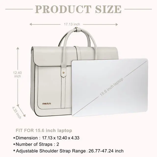 Back pocket dimensions: 8.46 x 6.30 inch (L x W). ^^ Features a polyester foam padding layer and soft fabric lining for bump and shock absorption and protection of your computer or other stuff from accidental scratches. A top opening zipper gliding smoothly and allows convenient access to your device. Front 2 metal buckles also ensure the safety of your laptop and other stuff. ^^ Roomy enough with 3 compartments for all your daily stuff. The computer compartment in the middle provides a thick padded foam section with a hook & loop strap closure for your laptop or tablet. Professional design to protect your laptop against accidental impacts and scratches. The other two side compartments can store your jewelry, mobile phone, keys, mouse, passports, credit cards, cash, makeups and so on. ^^ Made of waterproof PU leather material, stylish and fashion. With 2 removable and adjustable padding shoulder strap varied from 26.77 -maximum 47.24 inch. Removable shoulder strap allows you to carry it as a backpack, crossbody bag, shoulder bag or handbag. ^^ This attractive fashionable waterproof PU leather briefcase backpack is ideal for daily use at shopping, office, business trip, work, weekend, outdoor activities, outdoor holiday, travel, gyms, camp, etc.