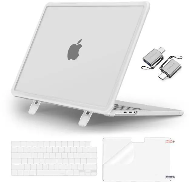 Designed ONLY to be compatible with MacBook Pro 14 inch cover 2026 2025 2024 2023 2023 2021 Release M5 / M4 Max / M4 Pro / M4 / M3 Pro / M3 Max / M3 / M2 Pro / M2 Max / M1 Pro / M1 Max Chip with Liquid Retina XDR Display & Touch ID (models: A3434 & A3112 & A3185 & A3401 & A2918 & A2992 & A2779 & A2442). ^^ Please kindly check the model number "Axxxx" on the back of the laptop before your purchase, make sure you choose the exact same model number as the listing title stated "A3434" or "A3112" or "A3185" or "A3401" or "A2918" or "A2992" or "A2779" or "A2442" that compatible with MacBook Pro M5 14 inch case, compatible with MacBook Pro M4 14 inch case, compatible with MacBook Pro M3 14 inch case, compatible with MacBook Pro M2 14 inch case and compatible with MacBook Pro M1 14 inch case. ^^ Engineered shock-absorbent beveled ridges design wraparound bumper heavy duty shockproof hard shell case cover with carbon fiber edge design, provides ultimate protection for your laptop against accidental scuffs, drops, and scratches. Fully vented for heat disbursement, fully access to all buttons and features. Totally removable, easy to put on and take off. The built-in foldable kickstands provide an ergonomic typing angle, also give you a better visual experience. ^^ 2 pack USB C to USB adapter plug the adapter USB Type-C end into laptop USB-C port, then connect another female USB 3.0 port to standard USB-A device, such as, mouse, keyboard, SSD and flash.