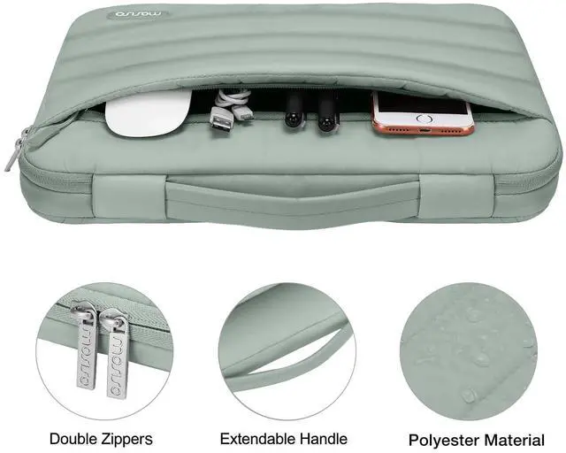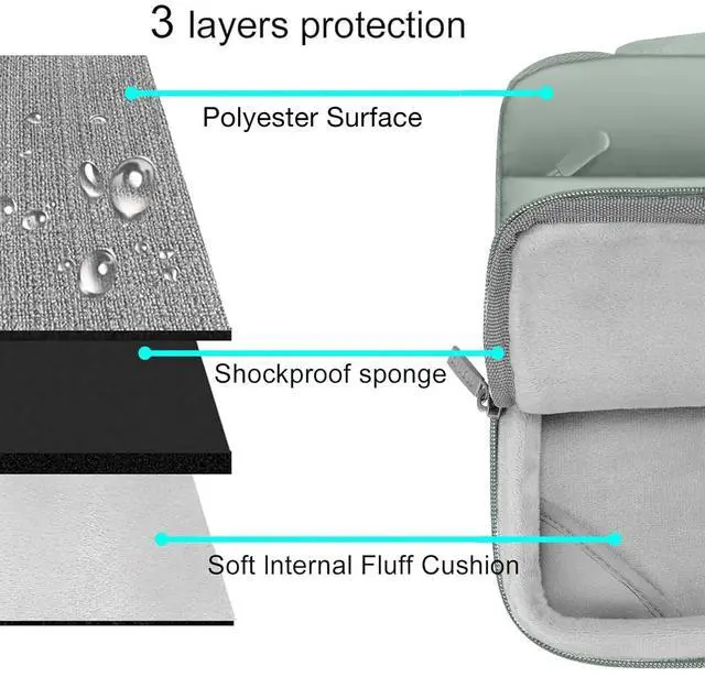The front pocket dimension: 12.99 x 8.26 inches (L x W). Made of soft touch puffy polyester material, protect your laptop against accidental spills. Slim and lightweight, does not bulk your device up and can easily slide into your briefcase, backpack or other bag. Ideal for business, daily and travel. ^^ Including 1 keyboard cover & 1 screen protector to protect your laptop keyboard & screen against spills. The ultra slim webcam cover sticker is perfect and convenient to provide privacy security and peace of mind to individuals, families, groups, companies and organizations, it will not add any thickness and weight to the device. Cover your webcam when not in use and prevent web hackers from spying on your life.