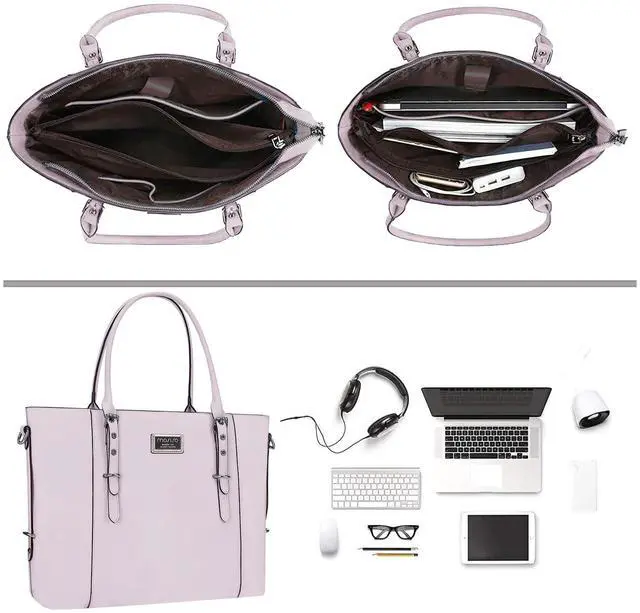 inner zipper compartment dimension: 16.93 x 10.24 inch. This professional tote bag features a cushioned laptop sleeve with soft protection, spacious enough for a 17- 17.3 inch laptop ^^ Large Capacity & Multiple Storage Work Tote Bag with Laptop Compartment. Made of PU leather material, stylish and fashion. Effectively protect your computer from accidental bumps, impacts and scratches. Roomy enough with 3 compartments and 3 pockets for all your daily stuff, keep your items well organized. Boasting ample storage and multiple compartments, the bag serves as a teacher organizer, nursing essential, business companion, or travel-ready carry-on ^^ Professional & Useful Laptop Tote Bag for Women. With a removable adjustable shoulder strap varied from 31.5 inch to maximum 55.9 inch. Removable shoulder strap allows you to carry it as a crossbody bag, shoulder bag, messenger bag, briefcase or handbag. Top handle zipper closure, prevent your laptop fall out, the exterior pocket to keep your mobile phone and keys easy and fast access ^^ Laptop Messenger & Shoulder Bags with Convenient and Comfortable Design. A top opening zipper gliding smoothly and allows convenient access to your device.