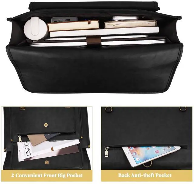 Back pocket dimensions: 11.42 x 6.3 inch (L x W). This professional tote bag features a cushioned laptop sleeve with soft protection, spacious enough for both a 15.6 inch laptop and 12.9 inch tablet. ^^ Large Capacity & Multiple Storage Laptop Messenger Bag with Laptop Compartment. The computer compartment in the middle provides a thick padded foam section with a hook & loop strap closure for your laptop or tablet. Professional design to protect your laptop against accidental impacts and scratches. Roomy enough with 3 compartments for all your daily stuff. A top opening zipper gliding smoothly and allows convenient access to your device. ^^ Professional & Useful Laptop Backpack. Removable and adjustable padding shoulder strap varied from 26.77 - maximum 47.24 inch. Removable shoulder strap allows you to carry it as a backpack, crossbody bag, shoulder bag, messenger bag, briefcase or handbag. Reinforced bottom with 4 rivets protects your bag from damage. Boasting ample storage and multiple compartments, the bag serves as a teacher organizer, nursing essential, business companion, or travel-ready carry-on. ^^ Laptop Messenger & Shoulder Bags with Convenient and Comfortable Design.