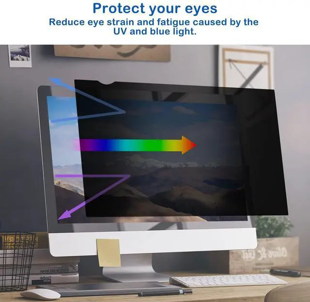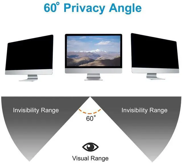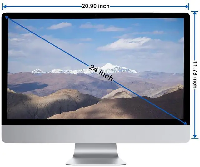 Dimension: 20.90 x 11.73 inches (L x H). This privacy screen filter is to fit diagonal 24 inch 16:9 aspect ratio widescreen monitor. Please check your computer screen's width and height before purchase. ^^ Protect your privacy from prying eyes, you'll see the information on your display while people on either side only see darkened screen. Shield and darken out your screen beyond 30-60 degrees.