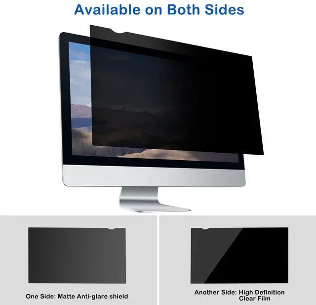 (Note: It does not block visibility directly behind you). ^^ One side is an anti-glare shield, matte material will reduce glare to help relieve eye strain and stress when you are working for a long time. The other side has high definition clear transparency, it will maximize the resolution, not darken your screen and keep the original screen brightness. You can choose which side to use according to the circumstances. ^^ Also can protect your eyes by filtering 95% UV and curbing 50% blue light. Meanwhile it can provide protection for your screen against dust, fingerprint, scratches and scrapes. Suitable for office / home OL, gamer and programmer. ^^ 60% clear transparency, which will keep the original screen brightness. Easy to install and remove. 2 ways to attach the screen protector. Some adhesive strips and side adhesive buckles are included per package.