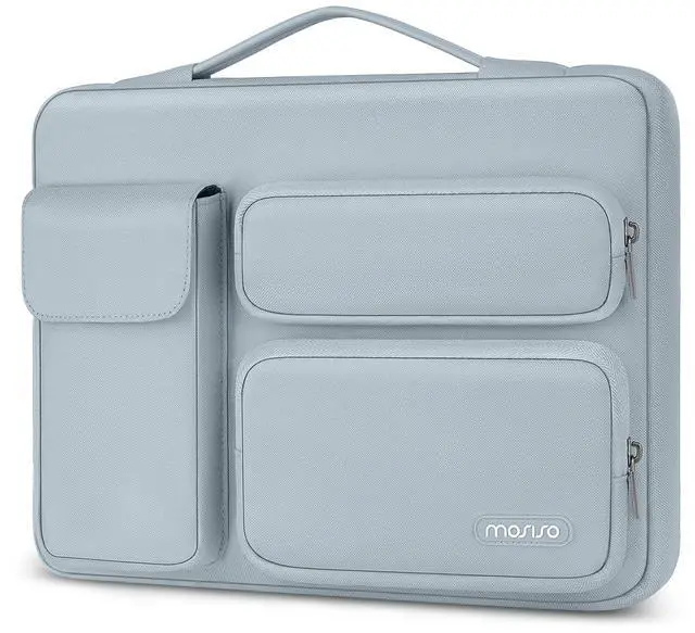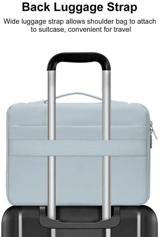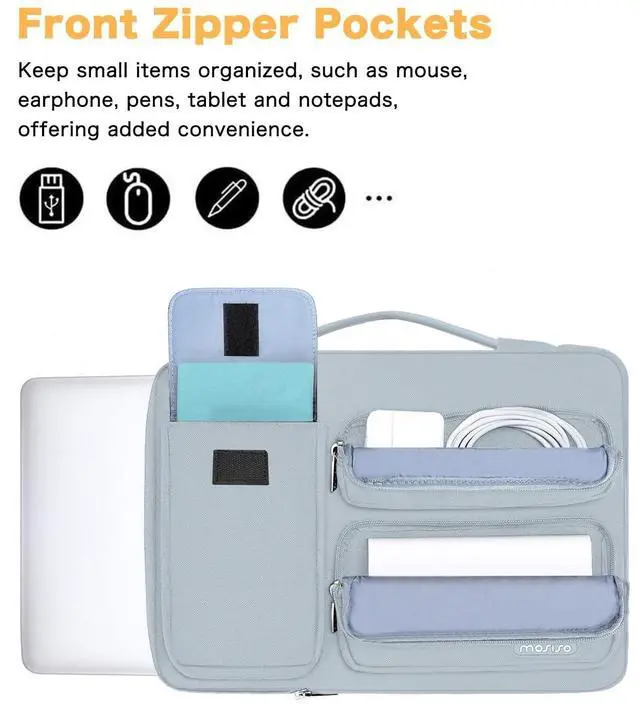 Right big raised pocket dimension: 7.68 x 3.94 inches (L x W x H). ^^ 360 degree all around protective reinforced interior edge briefcase carrying case bag protect your laptop from any accidental dropping. Extendable handle design makes it to carry your laptop around in comfort, you can also tuck away the handle. Side opening zipper design, avoid accidental dropping of your laptop while carrying. 2 raised & 1 flapover pockets are convenient for quick-access and store cell phone, wallet, keys and other small items. ^^ Multifuncional laptop sleeve with 3 front organizer pockets design enables you to carry your laptop / notebook / Ultrabook computer in a uniquely sleek style. Features a polyester foam padding layer and fluffy cushion for bump and shock absorption and protection of your device against dust, dirt, bump, shock and accidental scratches. ^^ Considerate design is the back trolley suitcase belt for ease use during business trip. It is really convenient for your happy journey to any where. Slim and lightweight; does not bulk your laptop up and can easily slide into your briefcase, backpack, or other bag. This protective carrying sleeve case cover bag with handle and pockets is ideal for you to take your laptop out.