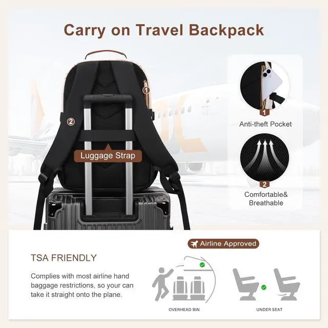 DescriptionThis computer backpack with stylish appearance is suitable for a wide range of uses. Can be use as a travel backpack, college backpack, commuting backpack, work backpack and carry on backpack, meet all your daily carry potential, roomy enough for travel accessories.