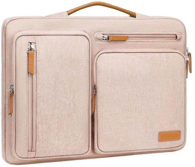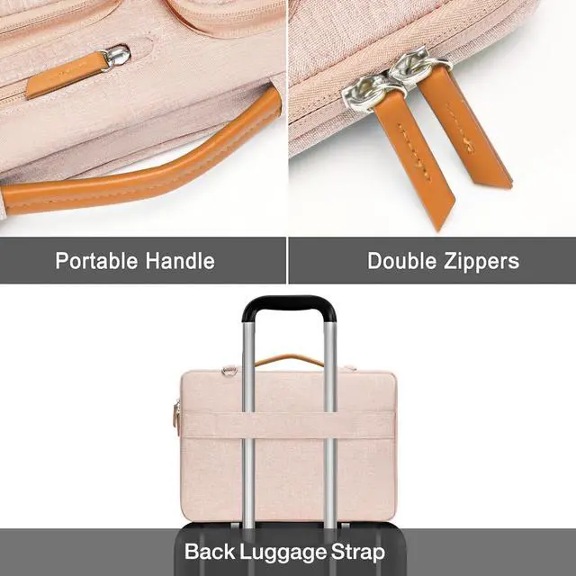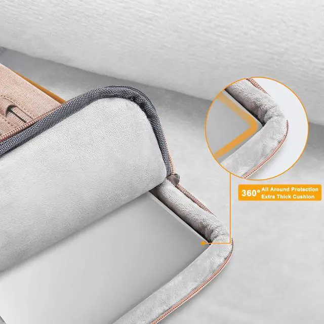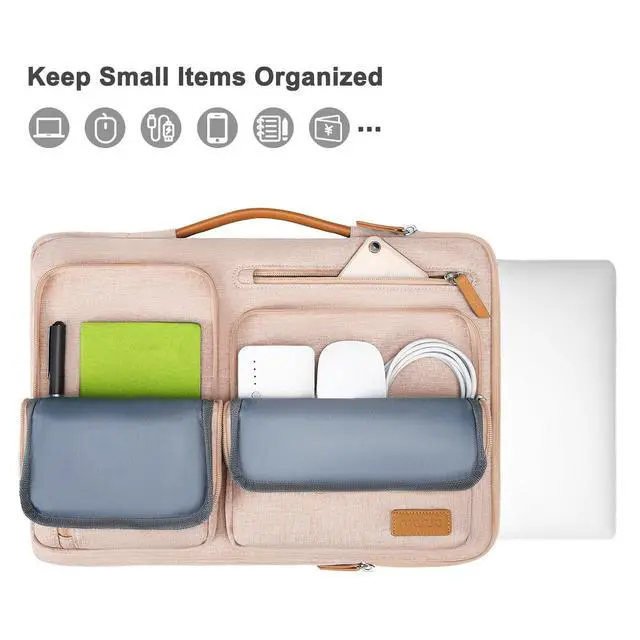 • 360 degree all around protective reinforced interior edge briefcase carrying case bag protect your laptop from any accidental dropping. Extendable handle design makes it to carry your laptop around in comfort, you can also tuck away the handle. Side opening zipper design, avoid accidental dropping of your laptop while carrying. 4 front zipper pockets provide enough space to keep mouse, earphone, pens and notepads, offering added convenience.
