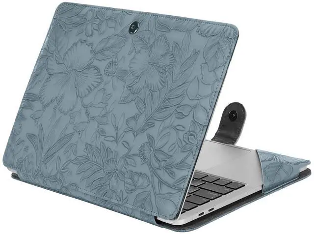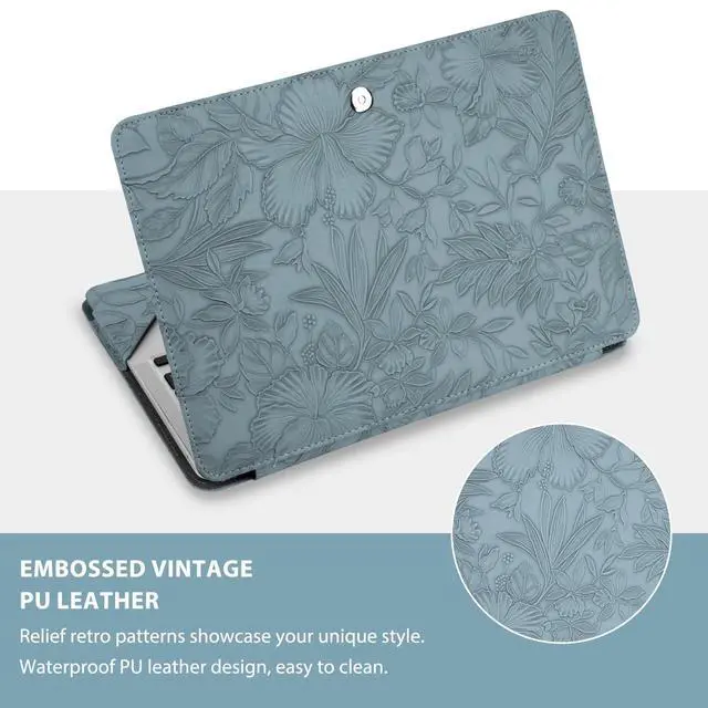 WARNING: This case is NOT compatible with other model laptops. ^^ Protective case cover with shock-absorbing features. All device features are accessible through cut-outs and openings. Magnetic closure design make sure your laptop securely in place. ^^ Made of waterproof embossed retro hibiscus PU leather material. Simple style portfolio stand case cover with clear straps at the top corners. Won't block your screen. ^^ Unique protective design allows operating your laptop freely without removing the case.