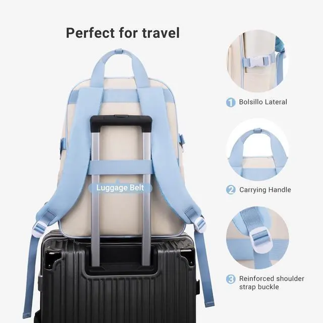 This travel backpack meets the requirements of airlines, it can easily fit under the seat or in the overhead compartment, saving time for checked luggage, it is the best personal item for air travel ^^ Travel Backpack with Luggage Strap. This backpack with luggage strap is very lightweight, easy to carry and suitable for traveling. Back luggage strap allows backpack to slide over the luggage tube, secure your backpack in place, provides a convenient way to carry the backpack and release your shoulder. It is ideal for work, business trips, commuting or daily travel