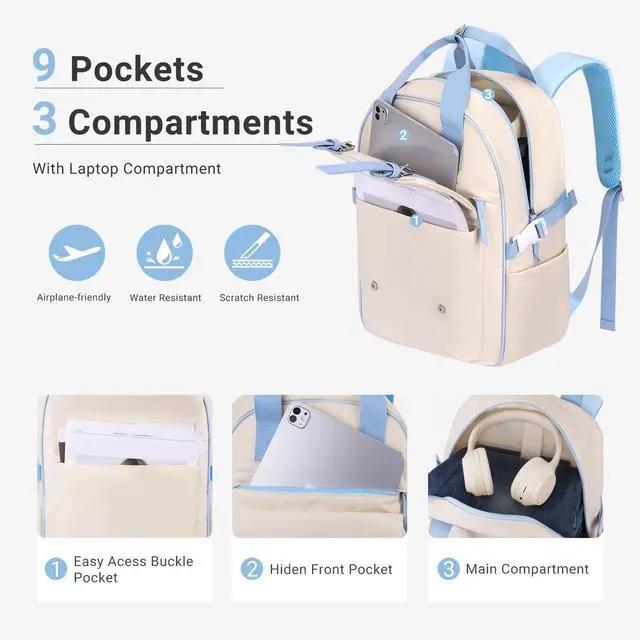 The main compartment can store 16 inch laptop, tablet, books and other items, and keep them organized. 2 front pockets can store your frequently used items for easy access. 2 side pockets are convenient for storing water bottles and umbrellas, and the adjustable strap above can prevent items from falling off ^^ Casual Daypack Backpack. The work backpack is made of soft polyester with gliding smoothly zippers, allows you convenient access to your stuff. Lightweight and soft, and easy to clean. Meanwhile the breathable shaped padded shoulder strap is extremely comfortable and lightweight, which will release heat rather than accumulate ^^ Lightweight Flight Approved Travel Backpack.