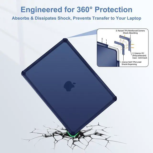 ONLY compatible with MacBook Pro 13 inch 2026-2016 (M2 M1 A2338 A2289 A2251 A2159 A1989 A1706 A1708 --MNEP3LL/A, MNEQ3LL/A, MNEH3LL/A, MNEJ3LL/A, MYD92LL/A, MYDC2LL/A, MYD82LL/A, MYDA2LL/A, MUHN2LL/A, MUHQ2LL/A, MUHP2LL/A, MUHR2LL/A, MV962LL/A, MV992LL/A, MV972LL/A, MV9A2LL/A, MR9Q2LL/A, MR9R2LL/A, MPXV2LL/A, MPXX2LL/A, MPXW2LL/A, MPXY2LL/A, MPXQ2LL/A, MPXR2LL/A, MPXT2LL/A, MPXU2LL/A, MLL42LL/A, MLH12LL/A, MLVP2LL/A, MNQF2LL/A, MNQG2LL/A, MXK32LL/A, MXK62LL/A, MXK52LL/A, MXK72LL/A, MWP42LL/A, MWP72LL/A, MWP52LL/A, MWP82LL/A) ^^ Reinforced Shock-Absorbing Corners & Anti-Crack Surround: Featuring four raised TPU (Thermoplastic Polyurethane) reinforced corners (soft TPU interior + hard PC (Polycarbonate) exterior) that actively cushion against drops and bumps, provide a full-wrap soft TPU bumper that guards every edge. Together, they create a 360 degree protective that absorbs and disperses impact, so your laptop stays safe through daily commutes, desk life and travel ^^