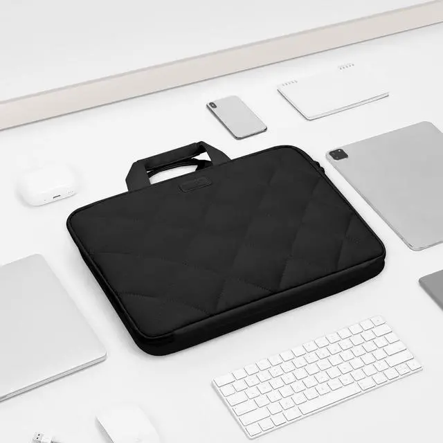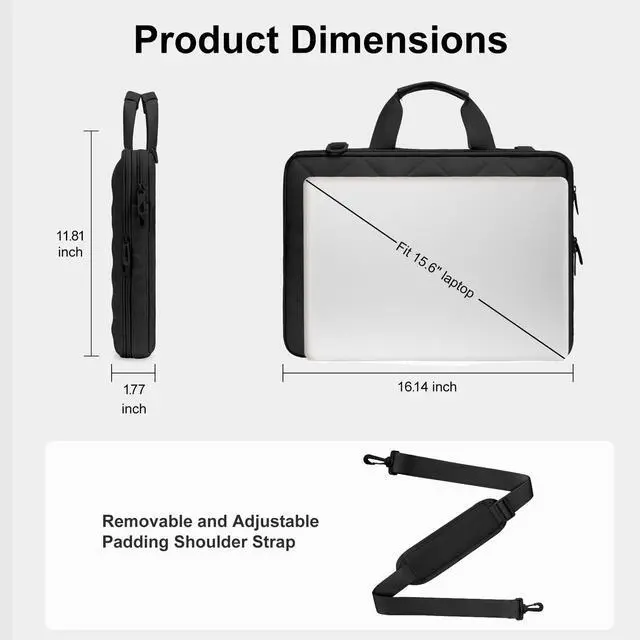 mesh pockets ( dimensions: 8.66 x 8.11 inches) and 2 pen slots. ^^ Made with quilted puffy material, features a polyester foam padding layer and soft fluffy fleece fabric lining. Protect your laptop from bump, shock and accidental scratches. Top-loading zipper on the sleeve glides smoothly and allows convenient access to your laptop computer and anti-theft zippers to protect the safety of your device. ^^ 360 degree all around protective reinforced interior edge briefcase carrying case bag protect your laptop from any accidental dropping. The front zipper pocket can be fully opened at 180 degree, easily access to your laptop or tablet and inner mesh pocket & pen slots allow you to put your cell phone, pen, wallet, keys and other items in the bag conveniently. ^^ Removable and adjustable padding shoulder strap with a shoulder pad varied from 31.10 inch to maximum 55.91 inch. Considerate design is the back trolley suitcase belt for ease use during business trip. It is really convenient for your happy journey to any where. This protective carrying sleeve case cover bag with pocket is ideal for you to take your laptop out.