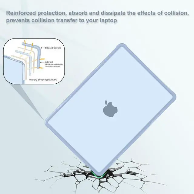 Crack-Resistant PC Core: Engineered with a shock-absorbing TPU exterior that cushions against bumps and drops & a rigid polycarbonate (PC) inner frame that resists cracks and keeps its shape. The reinforced surround add an extra defense where impacts hit hardest, so whether it's backpack jostles, desk knocks or travel tumbles, your laptop stays protected. Designed for life on the move, not just sitting still ^^