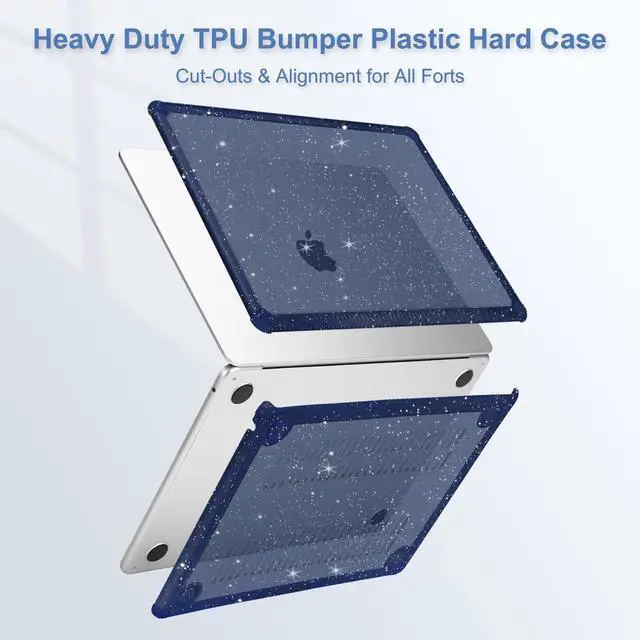 For best fit: This case is NOT compatible with other model laptops. Please kindly check the model number "Axxxx" on the back of the laptop before your purchase, make sure you choose the exact same model number as the listing title stated "A3241" or "A3114" or "A2941" that compatible with MacBook Air 15 in case ^^ Engineered, shock-absorbing wraparound TPU bumper on the corners & edges provide protection for your laptop. Totally removable, easy to put on and take off. The top and bottom case added lots of small glitters, so it will show different color with the difference of light. Sparkly glitter case design makes your laptop more attractive and fashionable all the time ^^ Alignment for All Ports. Scratches-resistant translucent case retains the charm of the original while protect your laptop from scrapes and scratches. Alignment for All Ports allows fully access to all buttons and features ^^ Including matching color keyboard & screen protector cover to protect your keyboard & screen against spills