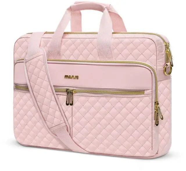 MOSISO 17-17.3 inch Laptop Bag, Laptop Briefcase Messenger Compatible with Dell, HP, Lenovo, Asus, Acer, Alienware, Square Quilted Computer Bag Work Office Business with 3 Pockets&Strap, Pink