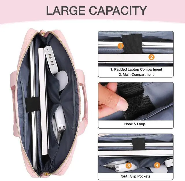 The Briefcase Bag with Large Capacity & Multiple Pockets. The front 3 zipper pockets provides enough space to keep mouse, earphone, pens and notepads, offering added convenience. Multifuncional 3 front
