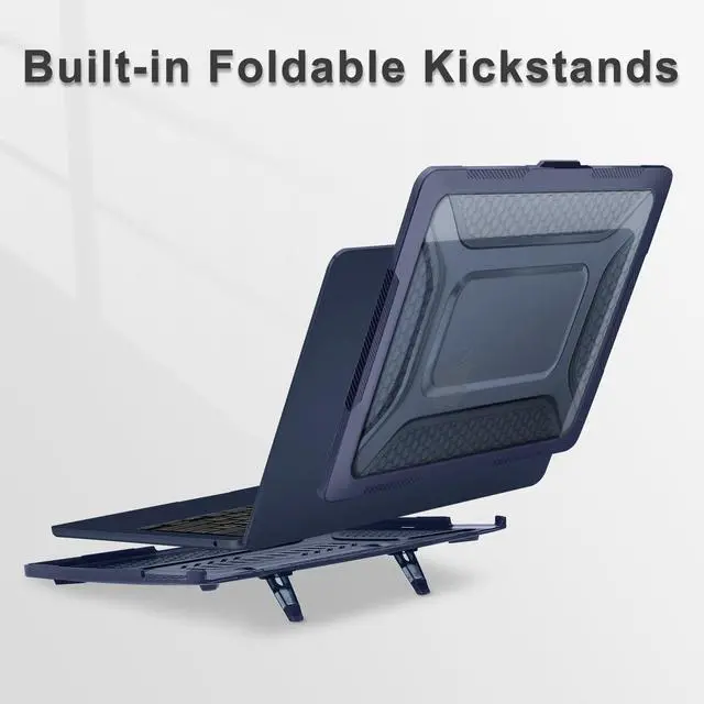 Touch ID with dimension: 11.97 x 8.46 x 0.44 inch (2022 2023 2024 2025 2026 Released). Fully vented for continuous cooling, fully access to all buttons and features ^^ The built-in foldable kickstands provide an appropriate ergonomic viewing & typing angle, give you a better visual experience. Engineered shock-absorbing beveled ridges honeycomb design wraparound heavy duty hard shell with TPU bumper, provides ultimate protective for your laptop ^^ Including 2 keyboard covers (compatible with MacBook Air 13 inch 2026 2025 release model M5 A3449 M4 A3240 & compatible with MacBook Air 13 inch 2024 2023 2022 release model M3 A3113 M2 A2681) & 1 screen protector to protect your keyboard & screen against spills. This comfortable protective hard shell case can be used for daily, office, home, travelling, working & study