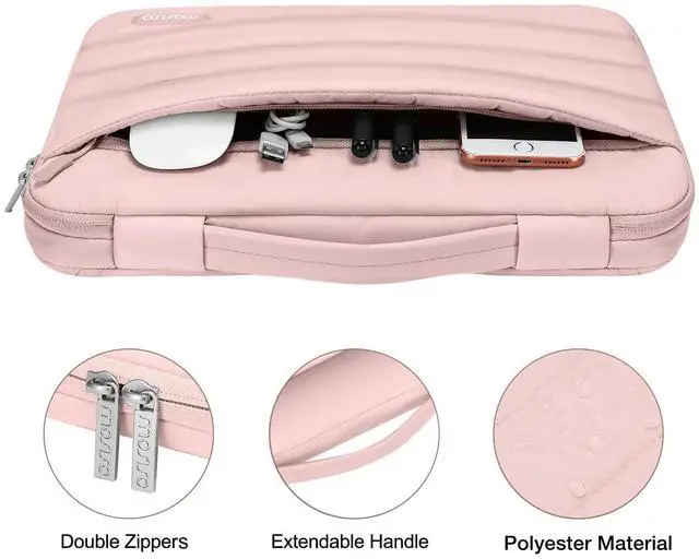 The front pocket dimension: 12.99 x 8.26 inches (L x W). Made of soft touch puffy polyester material, protect your laptop against accidental spills. Slim and lightweight, does not bulk your device up and can easily slide into your briefcase, backpack or other bag. Ideal for business, daily and travel ^^ Including 1 keyboard cover & 1 screen protector to protect your laptop keyboard & screen against spills. The ultra slim webcam cover sticker is perfect and convenient to provide privacy security and peace of mind to individuals, families, groups, companies and organizations, it will not add any thickness and weight to the device. Cover your webcam when not in use and prevent web hackers from spying on your life