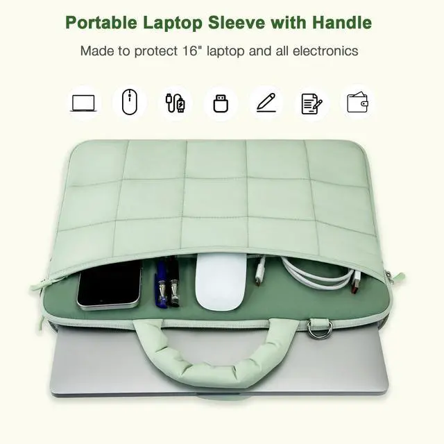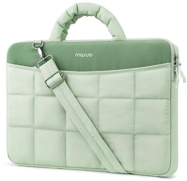 Front pocket dimension: 13.38 x 7.67 inches (L x W). This professional laptop shoulder bag features a cushioned laptop sleeve with premium protection, spacious enough for both a 15.6 inch laptop and 12.9 inch tablet ^^ Professional & Convenient Laptop Shoulder Bag for Work. 360 degree all around protective reinforced interior edge protect your laptop from any accidental dropping. Made with soft & lightweight rectangle quilted puffy polyester material, features foam padding layer and fluffy fleece fabric lining for bump and shock absorption and protection of your computer from accidental scratches. Top opening double zippers on the bag glide smoothly and allows convenient access to your laptop computer ^^ Laptop Messenger & Shoulder Bags with Convenient Design. Front organizer pocket provide enough space to keep mouse, earphone, pens and notepads, offering added convenience. Comfortable padded handle, this laptop shoulder bag is lightweight and stylish, making it the perfect accessory for young women going out. This computer bag features a stylish rectangle quilted and a removable and a adjustable padding shoulder strap, seamlessly combining fashion and functionality ^^ Feather-Light Comfort Laptop Sleeve Case. At just 0.88 pounds, this lightweight laptop bag ensures effortless carrying, making it ideal for all-day use.