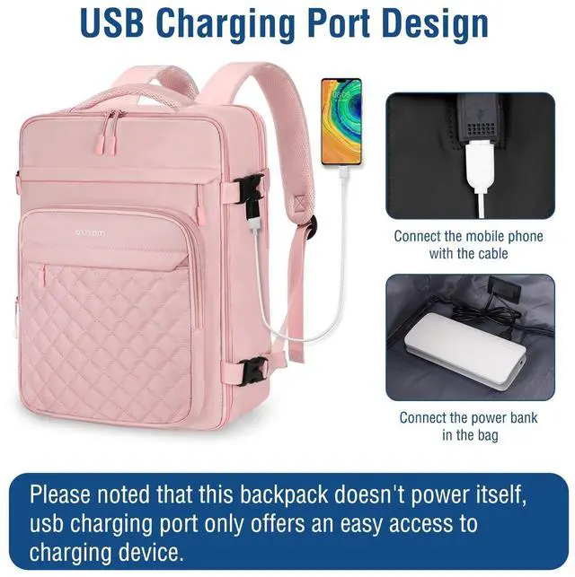 USB Charging Port: With built in USB charging port outside and built in charging cable inside, this backpack offers you a convenient way to charge your phone while walking. Please noted that this backpack doesn't power itself, USB charging port only offers an easy access to charging device. ^^