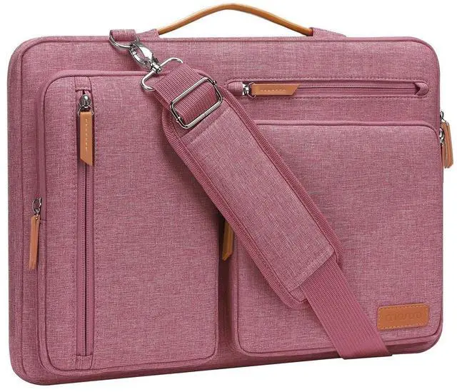 MOSISO 360 Protective Laptop Shoulder Bag,15-15.6 inch Computer Bags Compatible with MacBook Pro 16 inch, HP, Dell, Lenovo, Asus Notebook,Side Open Messenger Bag with 4 Zipper Pockets, Dusty Rose