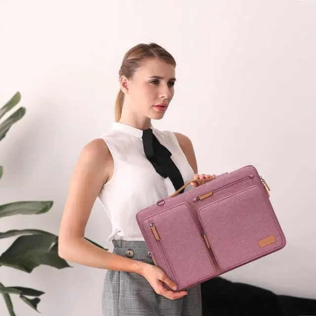 • The Laptop Shoulder Bag with Large Capacity. The main inner compartment for laptop or tablet. Front 4 zipper pockets is great for quick-access and store cell phone, pen slots, wallet, keys and other small items. Multifuncional 4 pockets design laptop shoulder bag enables you to carry your laptop/notebook/ultrabook computer in a uniquely sleek style. Considerate design is the back trolley suitcase belt for ease use during business trip. It is really convenient for your happy journey to any where
