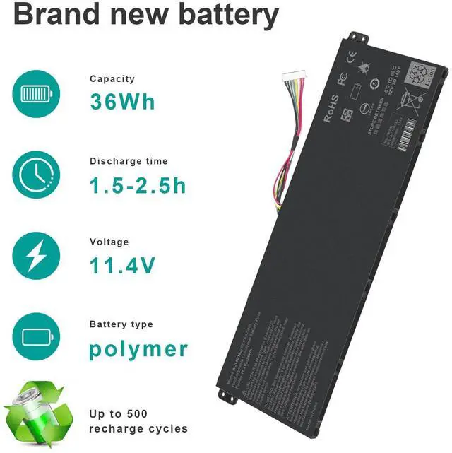 [(AC14B18J Battery for Acer)] - Asuncell laptop computer battery is made of Li-ion, 3 cells, 11.4V, 36Wh capacity. 100% Brand new. Up to 500 recharge cycles over the life of the battery.