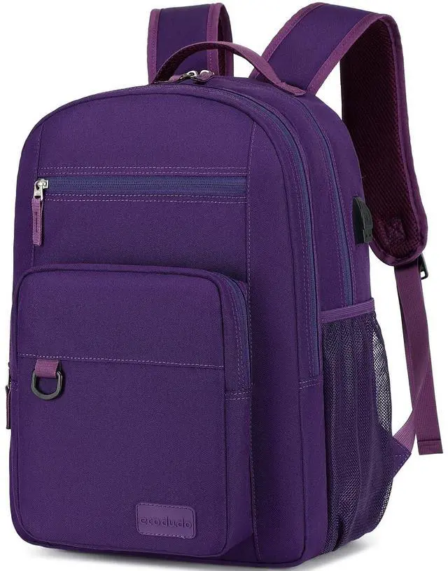 ecodudo School Backpack for Men and Women Water Resistant Daypack for College Work 15.6 inch Laptop Bookbag with USB Charging Port (Purple)