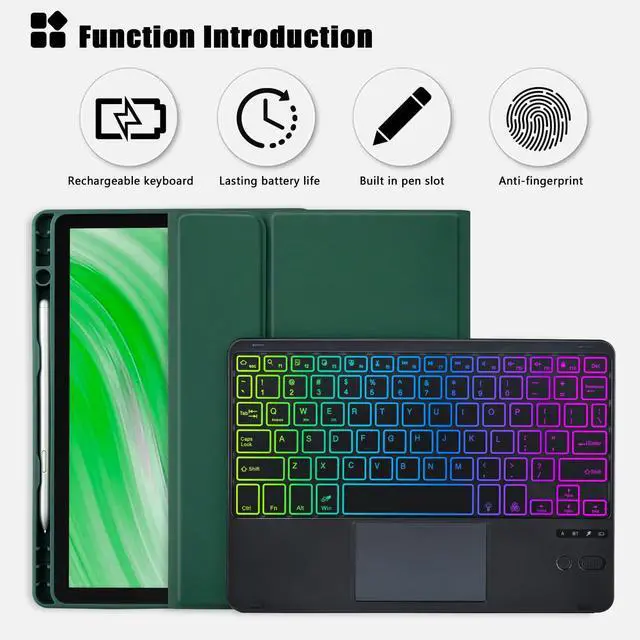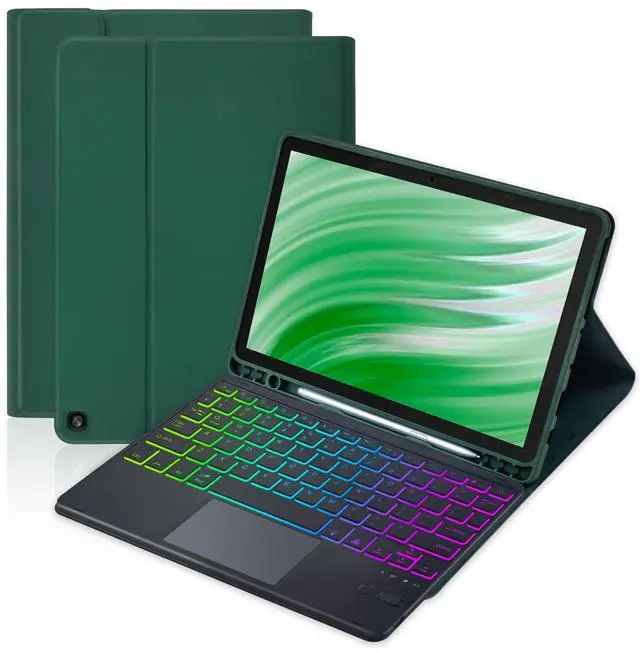 MePadKey Trackpad Keyboard Case for Fire HD 10/10 Plus 10.1 inch 2021/2023(11/13th Generation),7-Color Backlight Rechargeable Keyboard with Kids Multi-Angle Cover for Tablet (Dark Green)