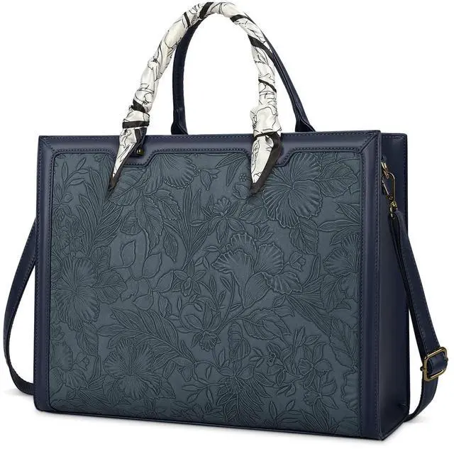 [(HIGH-QUALITY DURABLE LAPTOP BAG)] This women laptop bag is made of durable, waterproof, scratch-resistant PU leather and polyester lining. The smooth metal zipper on the top makes it easy to open. The sturdy handle and metal accessories make the tote bag more durable. And it has a detachable elegant silk scarf ornament attached in the front of this black professional briefcase. The metal feet can protect your laptop bag from damage.
