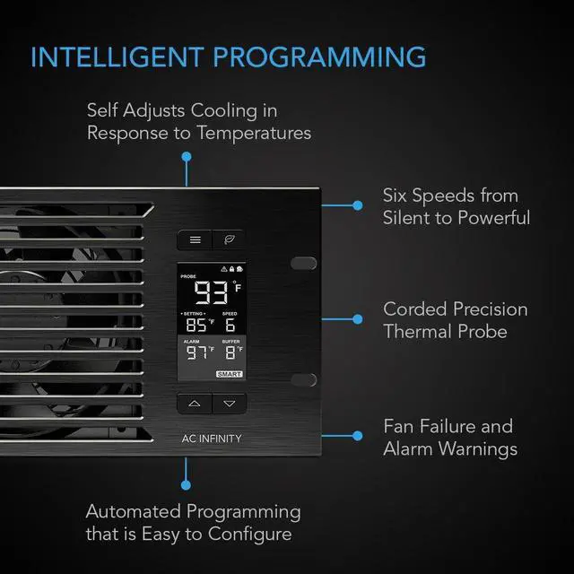 • Programmable thermostat controller with automated speed control, alarm warnings, and backup memory.