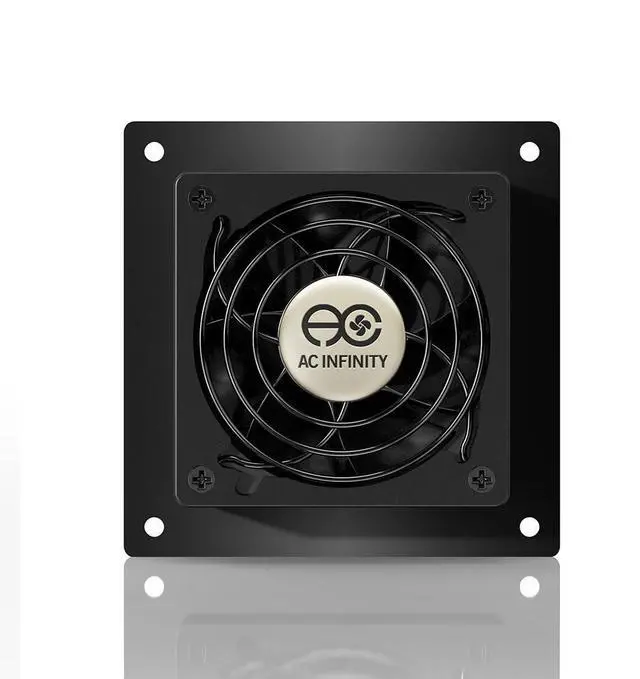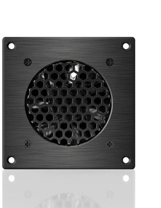 An ultra quiet fan system designed for cooling cabinets that requires minimal noise. ^^ Features a multi speed controller to set the fans speed to optimal noise and airflow levels. ^^ Contains a CNC machined aluminum frame with a modern brushed black finish. ^^ Powered by wall outlet or USB port, included Turbo Adapter increases performance by 25 percent.