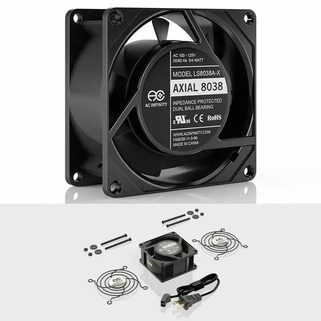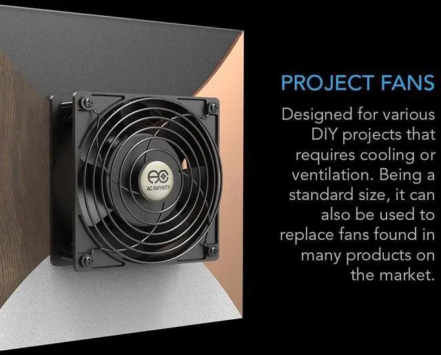Designed for projects that requires cooling or ventilation; or as a replacement fan for various products. ^^ Includes a heavy-duty aluminum fan with power plug cord, two fan guards, and mounting screw set. ^^ UL-certified fan with dual-ball bearings has a lifespan of 67, 000 hours. Can be mounted in any direction.
